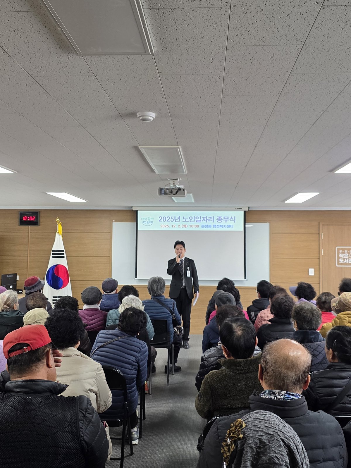 이날 종무식에서는 올 한 해의 활동을 돌아보는 시간과 함께 겨울철 혹한기 대비 어르신 맞춤형 안전수칙 교육도 병행하며 어르신들의 안전한 겨울나기를 돕는 뜻깊은 시간을 가졌다.