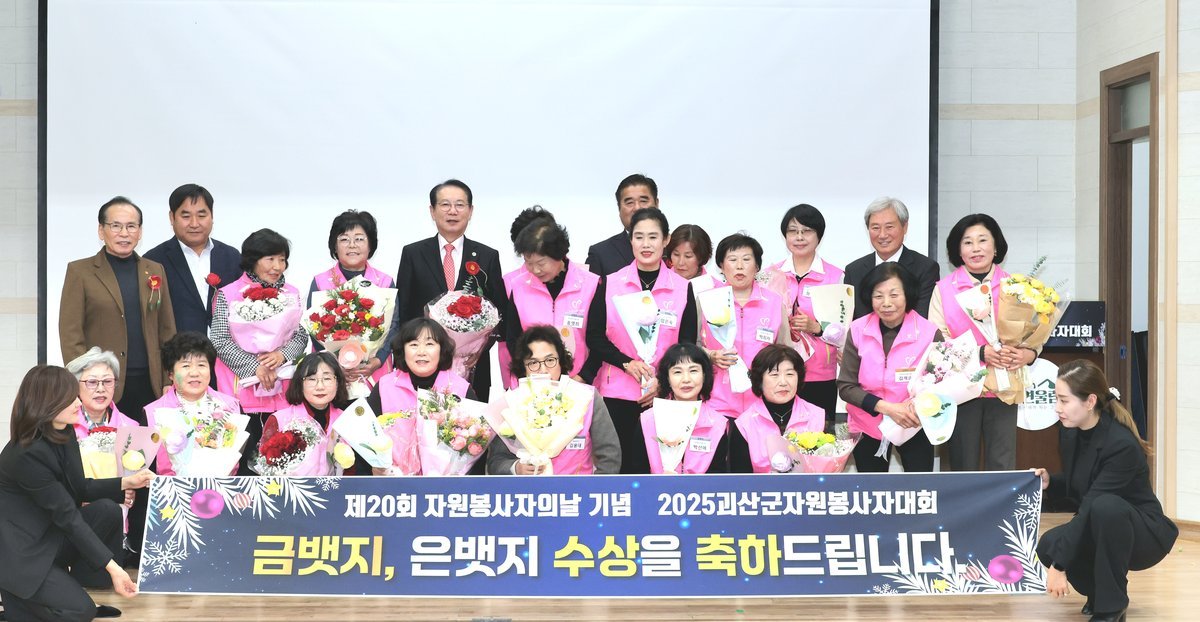 행사에서는 2025년 자원봉사 활동을 돌아보는 영상을 시작으로 100개 단체가 참여한 릴레이 봉사의 마지막 주자인 괴산군자율방범대가 상징 기를 반납하는 퍼포먼스가 이어졌으며 유공자 시상식이 진행됐다.