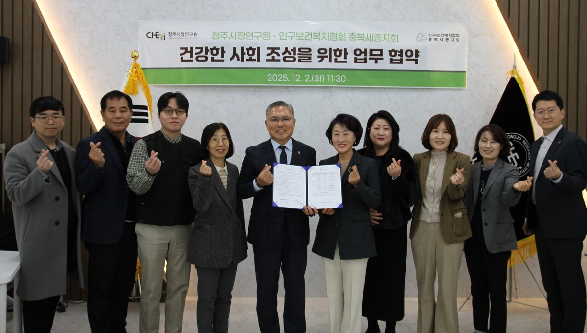 청주시정연구원은 이번 협약을 통해 지역 보건정책 기반을 강화하고, 인구 변화에 대응하는 실효성 높은 연구와 협력사업을 추진해 시민 삶의 질 향상에 기여한다는 방침이다.