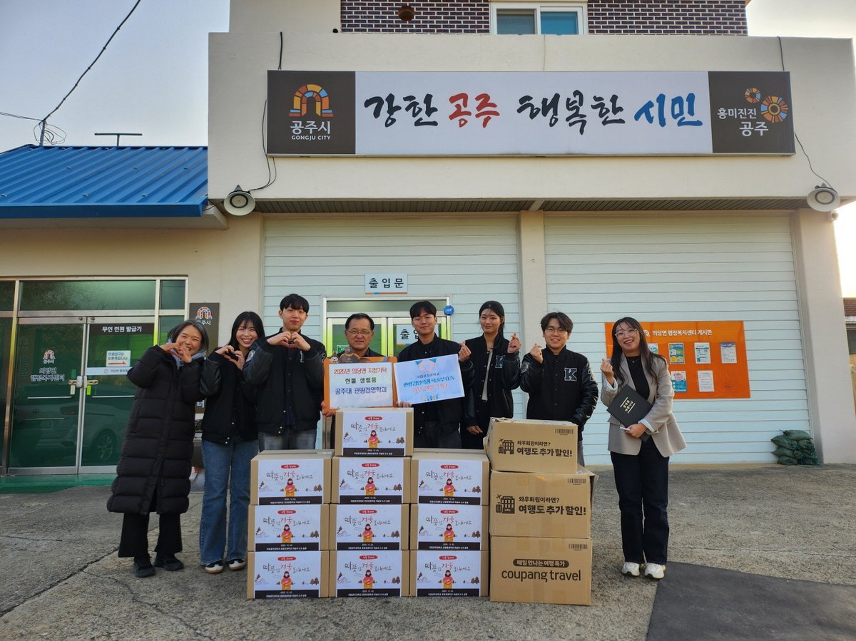 권석중 의당면장은 “경제적 어려움이 이어지는 상황에서 의당면 취약계층에게 큰 힘이 될 생필품을 기탁해 준 관광경영학과 학생들에게 깊이 감사드린다”며 “겨울철을 앞두고 더 많은 주민들이 어려움에 놓일 수 있는 시기인 만큼, 이번 기탁이 지역사회에 온정을 나누는 계기가 되기를 바란다”고 밝혔다.