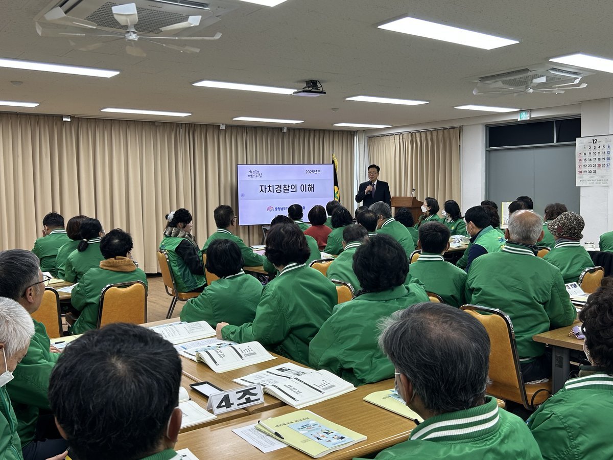 이날 교육에는 김영배 도 자치경찰위원회 사무국장이 강사로 참여해 시민들이 자치경찰 제도의 역할과 기능을 이해할 수 있도록 도입 배경과 성과, 주민 참여 방안 등을 설명했다.