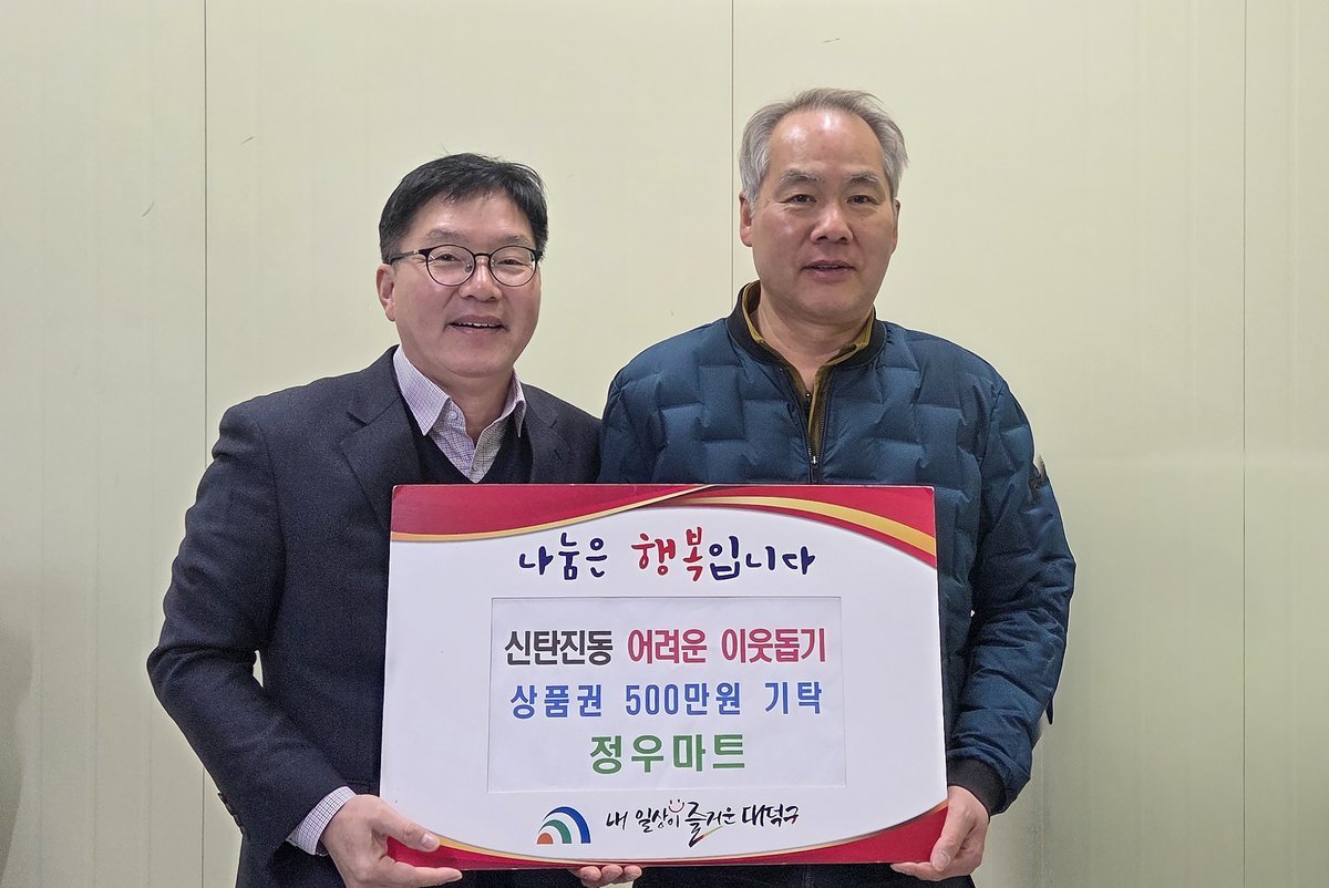 한편 정우마트는 최근 4년간 상품권 기탁 3회, 지역 경로당 생필품 지원 3회 등 1500만원 이상을 후원하며 지역 나눔 문화 확산에 기여하고 있다.