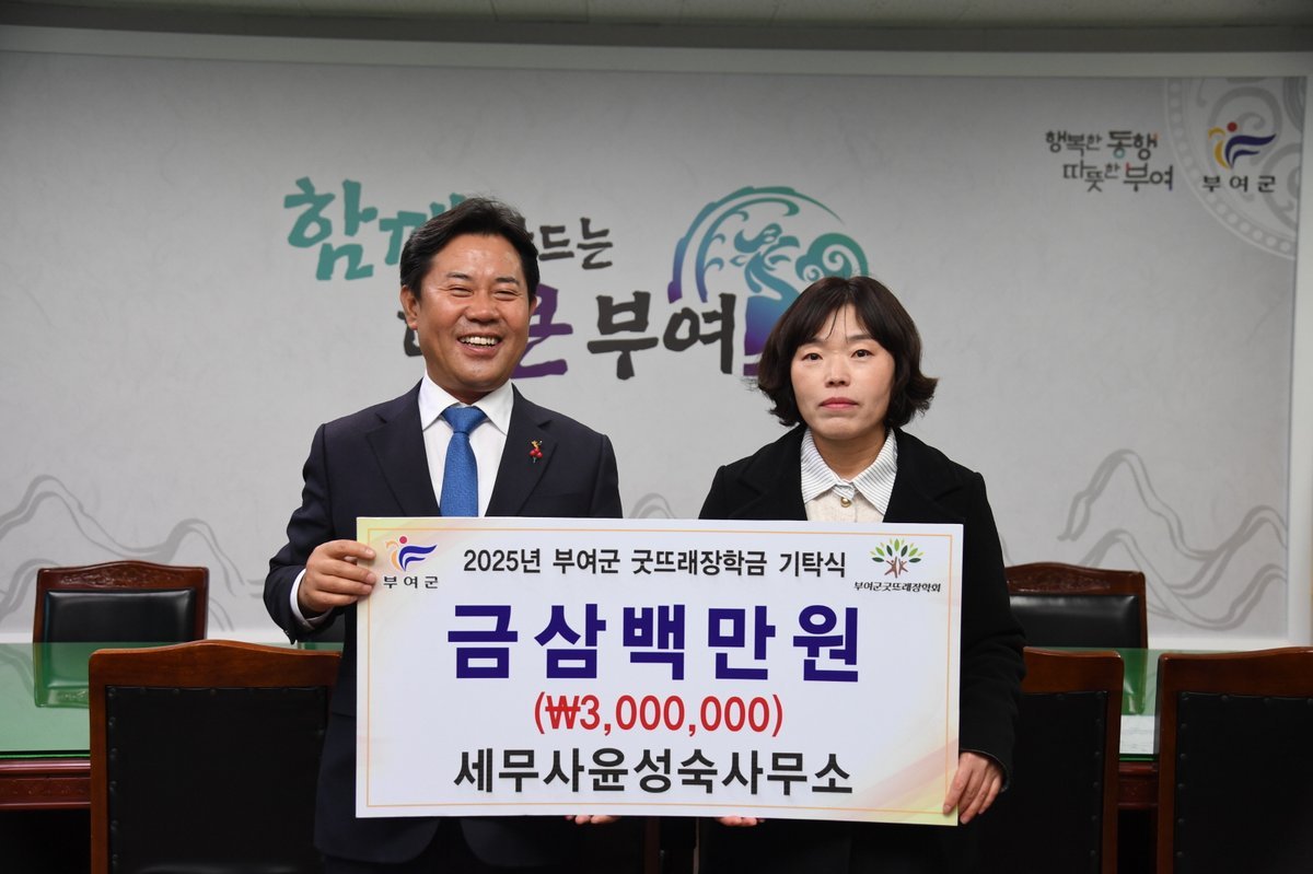 윤성숙 대표는 지난 2023년부터 지속해서 부여군굿뜨래장학금을 기탁해오며, 지역사회 발전을 위한 환원 활동에 적극 참여하고 있다.