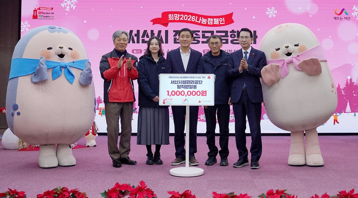 [세종타임즈] 서산시시설관리공단은 지난 4일 지역 사회 취약계층 지원을 위해 사회복지공동모금회가 주최하는 희망2026 나눔캠페인에 참여하고, 기관 소속 노동조합과 함께 200만원을 기부했다고 밝혔다.