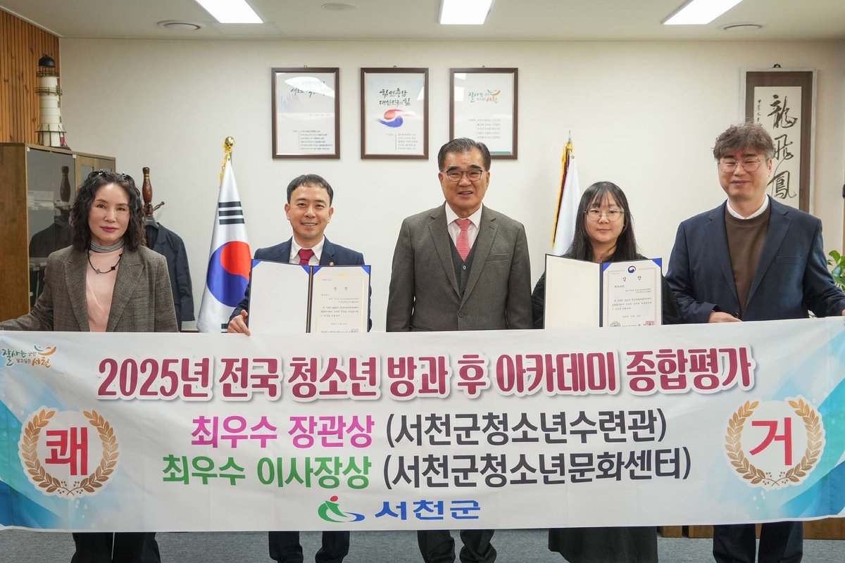 [세종타임즈] 서천군이 운영하는 서천군청소년수련관과 서천군청소년문화센터가 지난달 28일 성평등가족부와 한국청소년진흥원이 실시한 2025년 전국 청소년 방과후 아카데미 종합평가에서 나란히 최우수상을 수상했다.