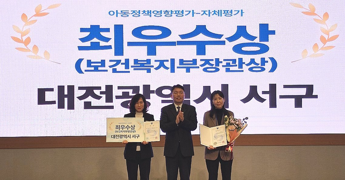 [세종타임즈] 대전 서구는 ‘2025년 보건복지부 아동정책영향평가’에서 최우수 지방자치단체에 선정돼 보건복지부장관상을 수상했다고 9일 전했다.