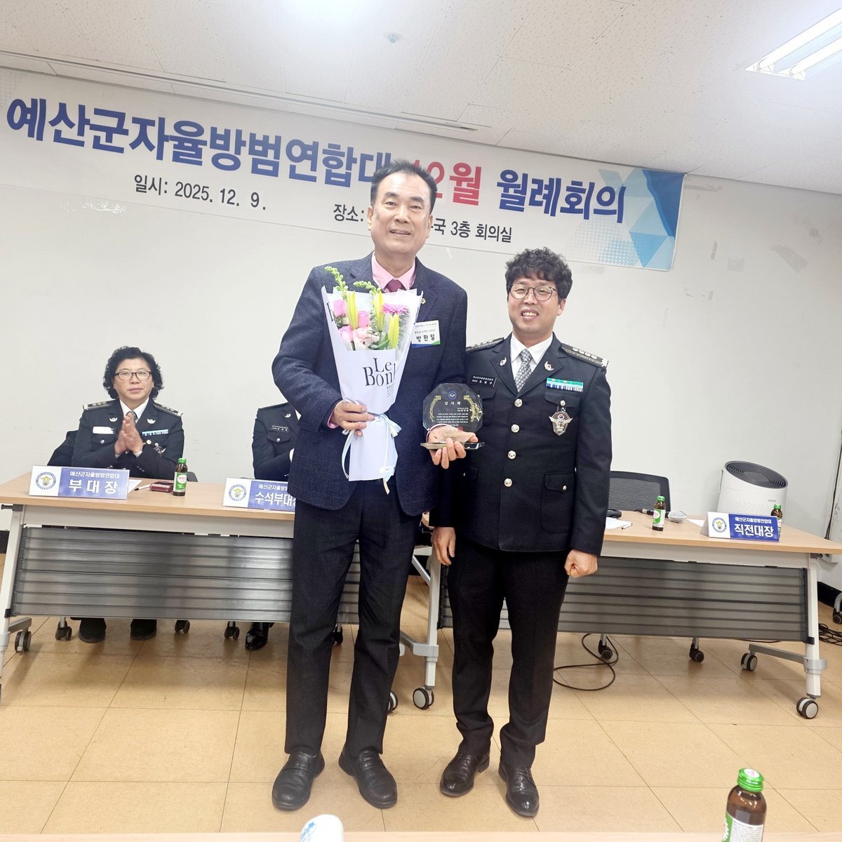또한 방 의원은 예산군자율방범연합대 기능보강 사업을 두 차례에 걸쳐 지원하며 조직 활성화와 방범 인프라 개선에 실질적 도움을 제공했다.