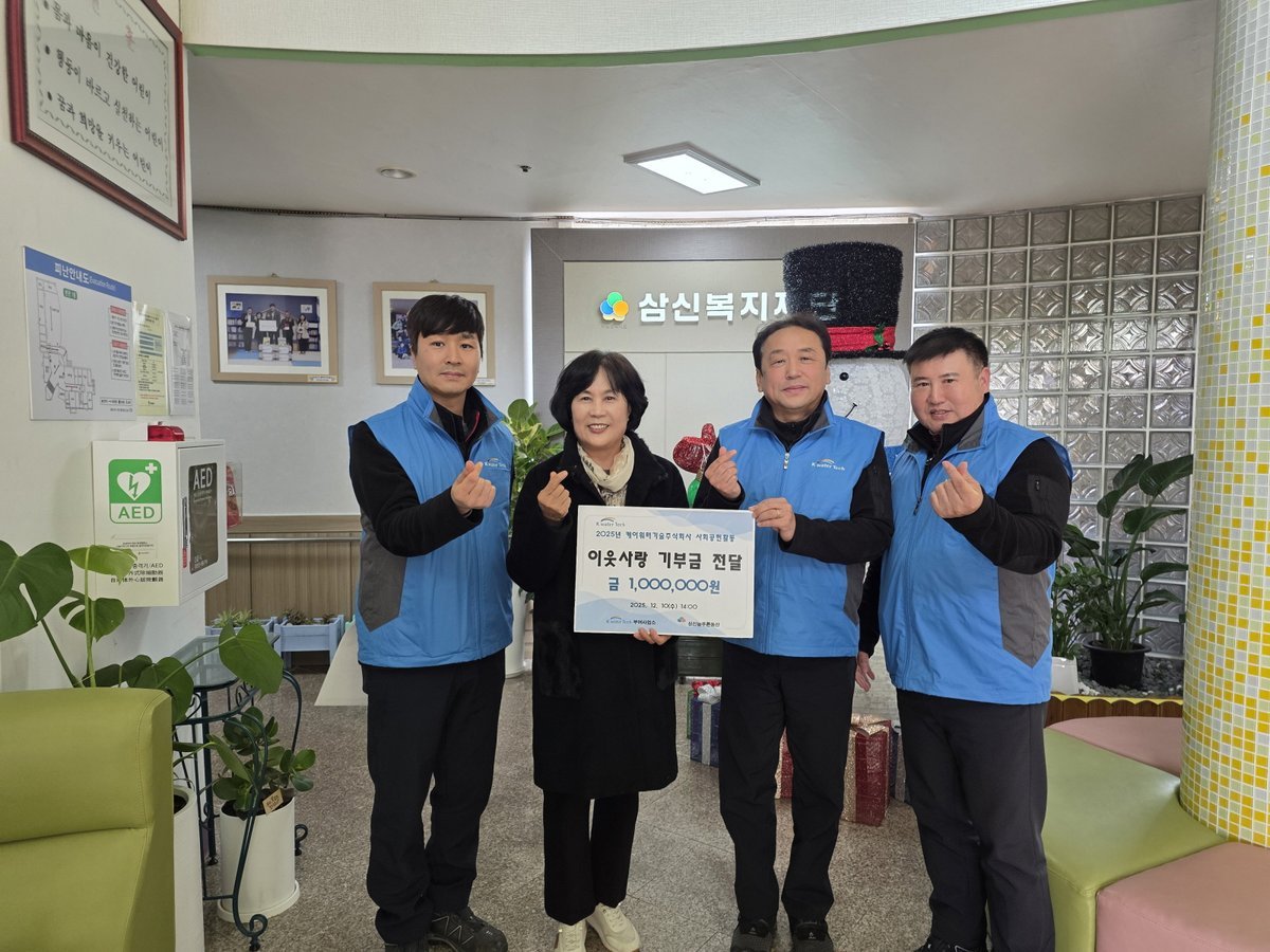 삼신늘푸른동산 관계자는 “아이들의 생활환경을 위해 꾸준한 관심을 기울여주시고, 올해도 따뜻한 후원으로 함께해 주신 케이워터기술 부여사업소에 깊이 감사드린다.”라며, “소중한 후원금은 아이들이 더욱 건강하고 안전하게 성장할 수 있도록 의미 있게 사용하겠다.”라고 전했다.