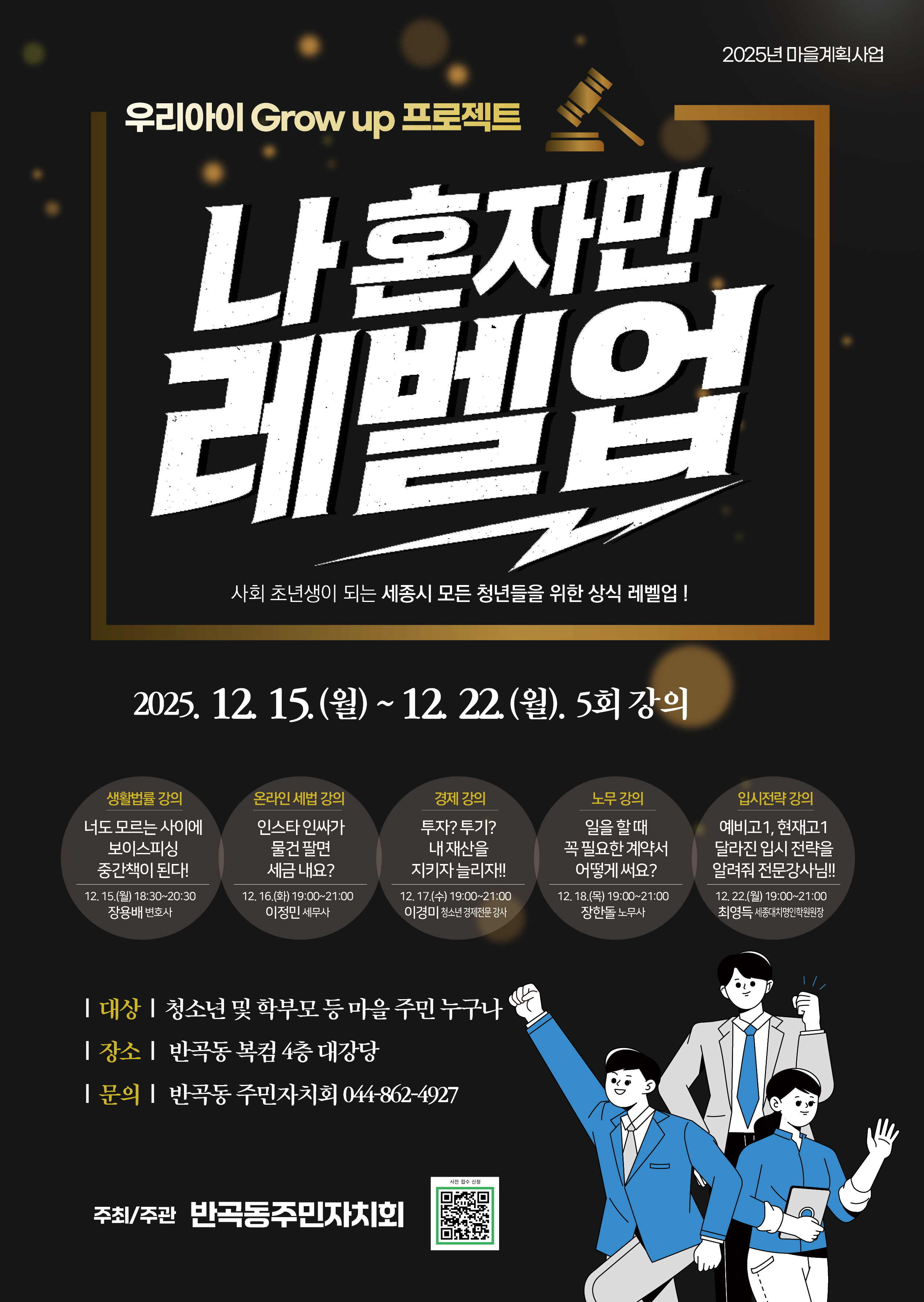 이항선 반곡동 주민자치회장은 “청소년들이 학교에서 접하기 어려운 생활 속 필수 법률과 금융 지식을 익히며 스스로 성장하는 소중한 시간이 될 것”이라며 “앞으로도 마을계획사업을 통해 청소년의 건강한 성장을 돕는 교육·문화 프로그램을 지속적으로 발굴하겠다”고 말했다.