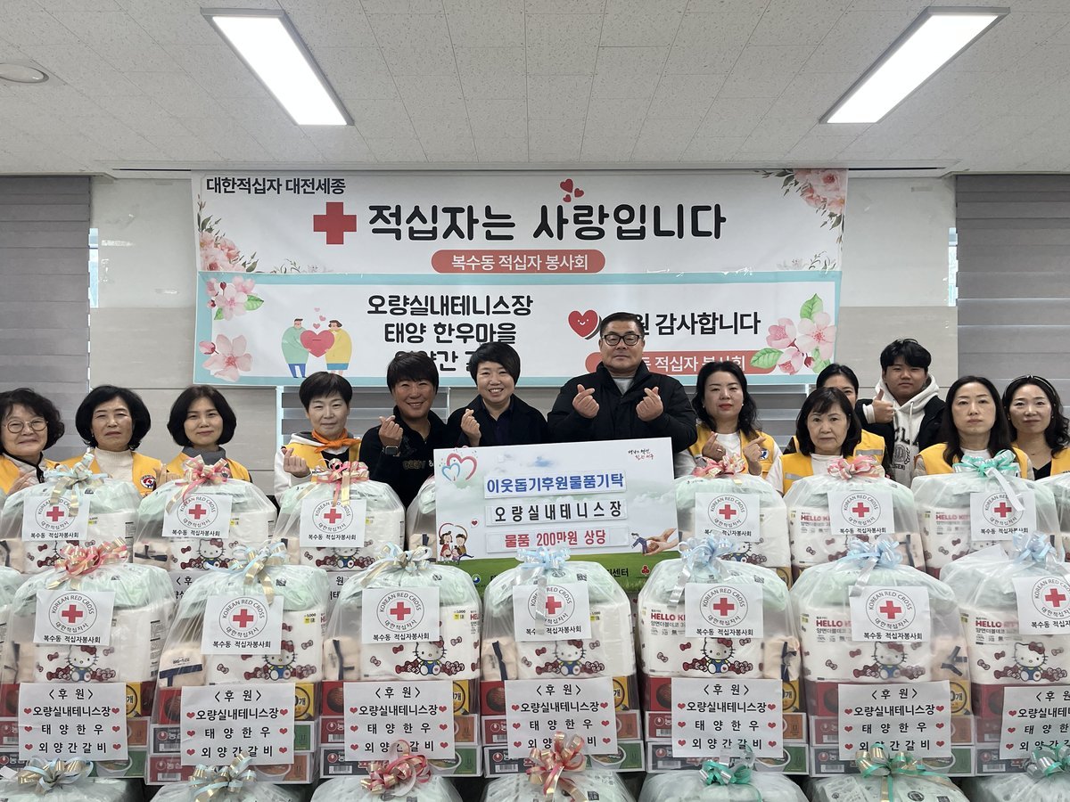 [세종타임즈] 대전 서구 복수동 행정복지센터는 △오량실내테니스장 △외양간갈비 △태양한우가 복수동 적십자봉사회를 통해 200만 원 상당의 생필품을 기탁했다고 15일 전했다.