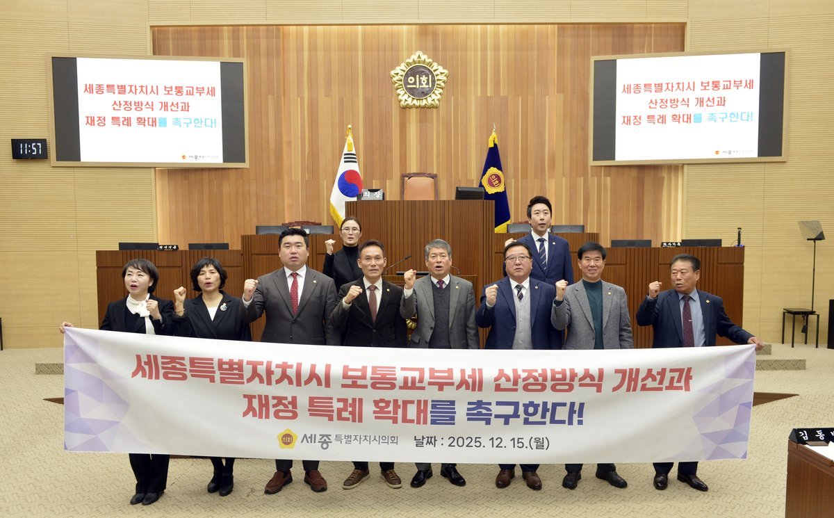 세종시의회는 이번 결의문을 통해 △단층제 특수성을 인정한 보통교부세 산정방식 시행규칙 즉각 개정 및 기초 행정수요 항목 전면 반영 △세종시법 개정을 통한 ‘정률제’ 도입 또는 별도 재정 특례 조항 신설 △일몰 예정인 재정 특례 연장 및 항구적 재정 안정화 대책 수립 등을 정부와 국회에 강력히 촉구했다.