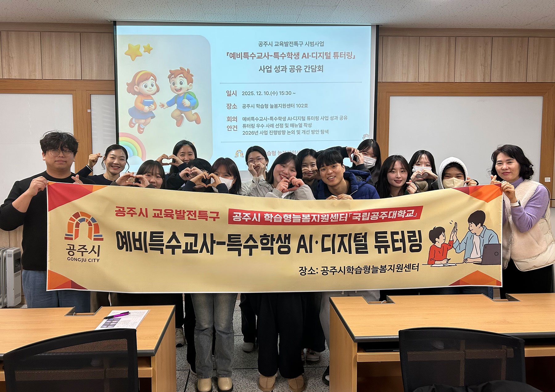 이번 프로그램은 국립공주대 특수교육학과 예비특수교사 12명과 공주시 관내 초등학교 특수학생 12명을 1대1로 매칭해 방과후 시간에 주 1회씩 총 16주간 진행됐다. 참여 학생들은 클립스튜디오, ChatGPT, Canva, CapCut 등 다양한 AI·디지털 도구를 활용한 맞춤형 학습을 통해 디지털 활용 능력과 학습 자신감을 키웠다.