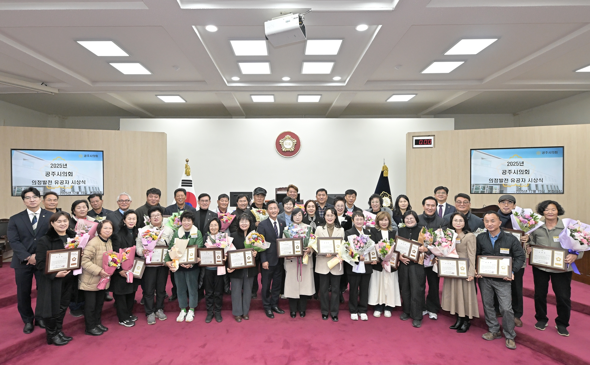 [세종타임즈] 공주시의회(의장 임달희)는 15일 오전 본회의장에서 제262회 제2차 정례회를 마친 뒤 ‘2025년도 의정발전 유공자 시상식’을 개최했다.