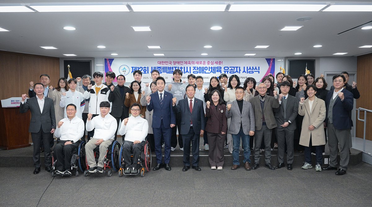 [세종타임즈] 세종특별자치시가 지난 15일 시청 세종실에서 ‘제12회 세종특별자치시 장애인체육 유공자 시상식’ 행사를 열고 장애인 체육 발전에 기여한 유공자들의 노고를 격려했다.