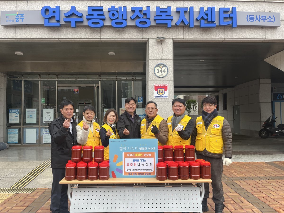 충주 중앙적십자봉사회는 사랑의 고추장을 연수동행정복지센터에 기탁했다고 밝혔다.