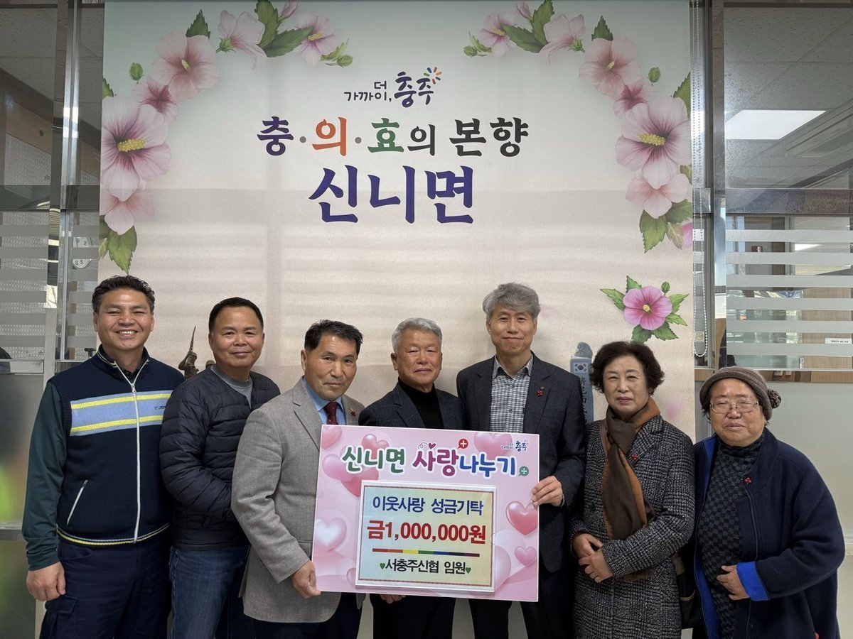 서충주신협은 신니면행정복지센터를 방문해 ‘희망 2026 나눔 캠페인’에 참여할 성금 100만 원을 전달했다고 밝혔다.
