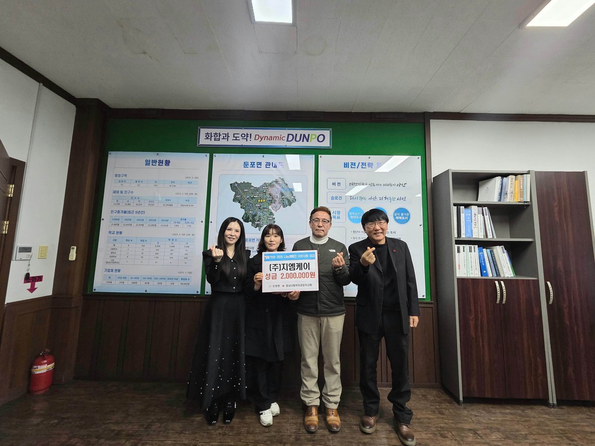 [세종타임즈] 아산시 둔포면 소재 ㈜지엠케이는 지난 15일 둔포면 행정복지센터를 방문해 ‘희망2026 나눔캠페인’성금 200만 원을 전달했다.