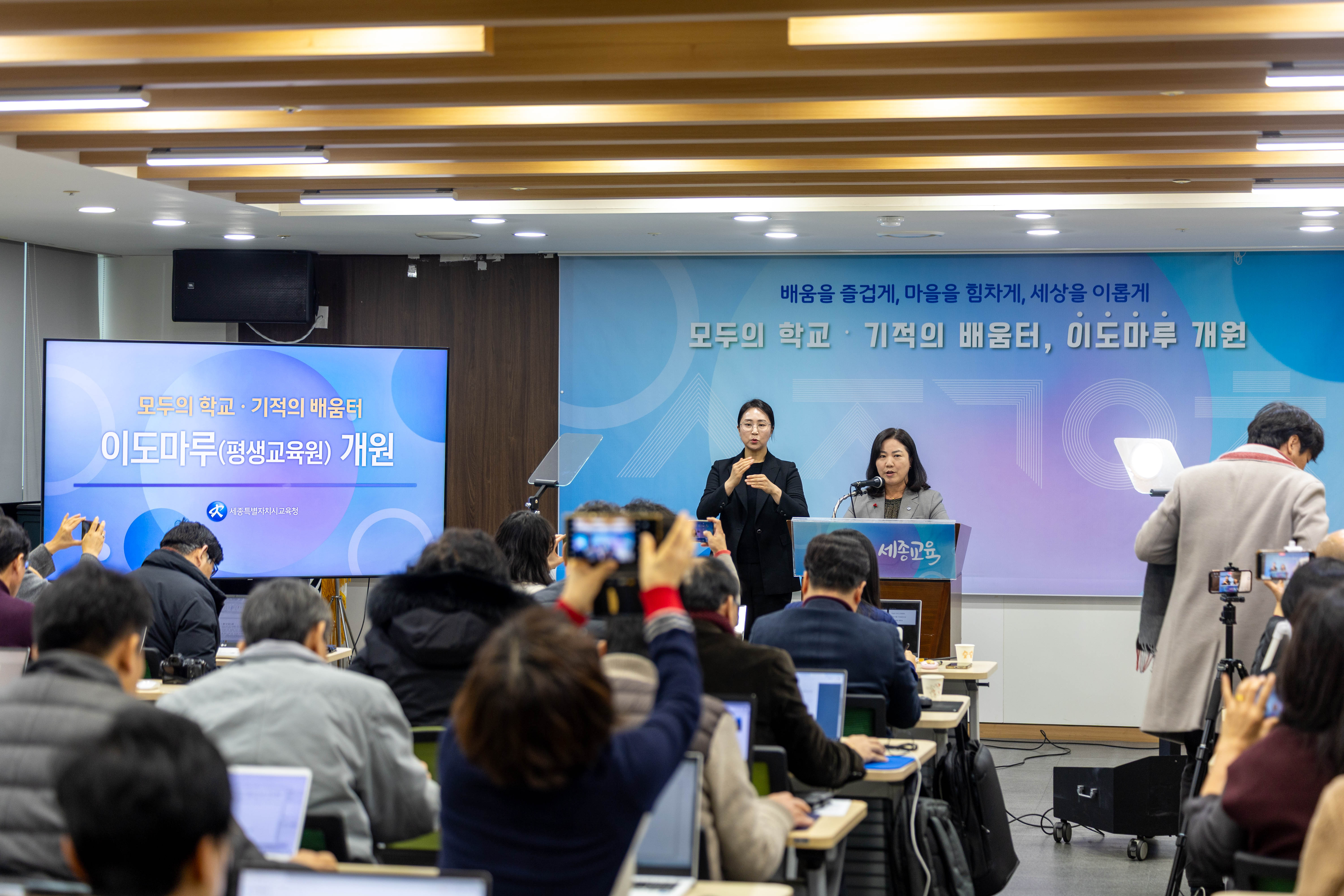 구연희 세종시교육감 권한대행 부교육감은 “앨빈 토플러가 말했듯 21세기의 핵심 역량은 끊임없이 배우고 지식을 재구성하는 능력”이라며 “이도마루가 시민 누구에게나 열린 배움터이자 세종 지역 평생학습의 중심 거점이 되도록 하겠다”고 말했다.