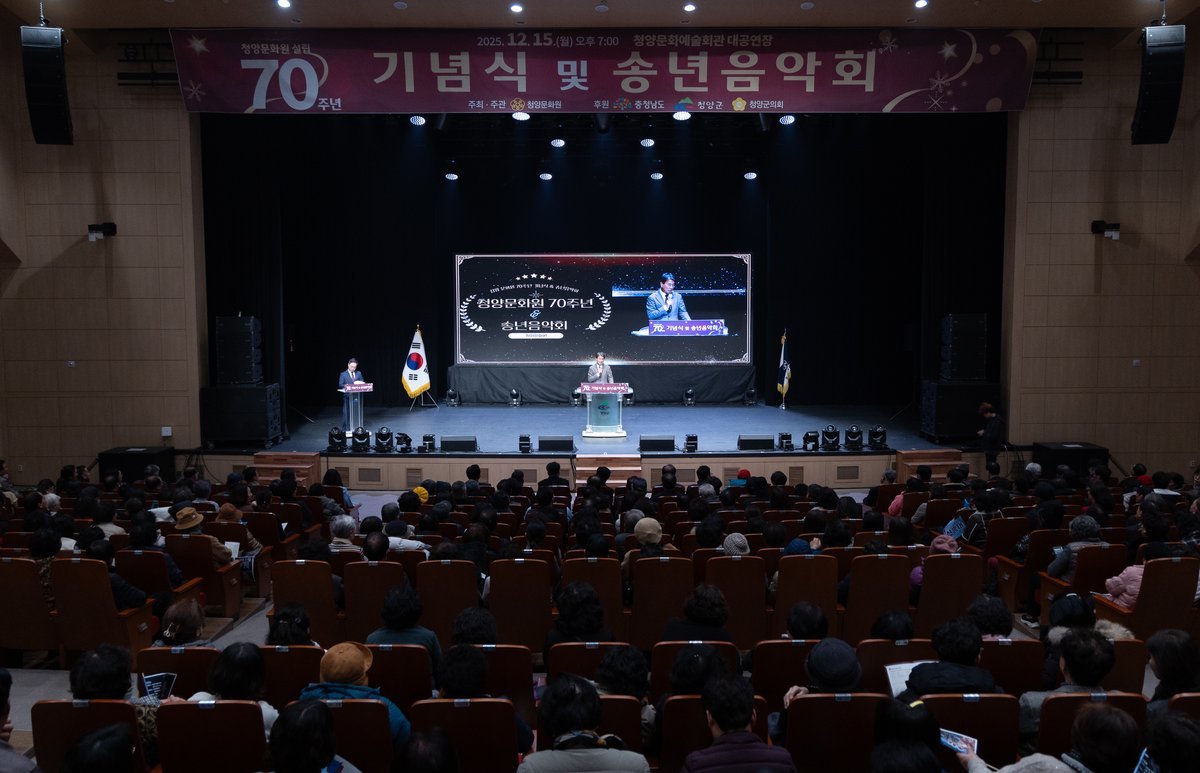 [세종타임즈] 청양군은 청양문화원이 지난 15일 청양 문화예술회관 대공연장에서 '청양문화원 설립 70주년 기념식 및 송년 음악회'를 성황리에 개최했다고 밝혔다.