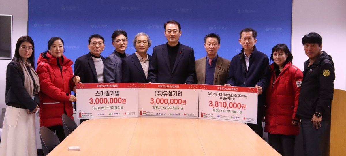 [세종타임즈] 대전시는 16일 건설기계개별연명사업자협의회, 스마일 기업, 유성기업으로부터 총 981만 원의 성금을 기탁 받았다.