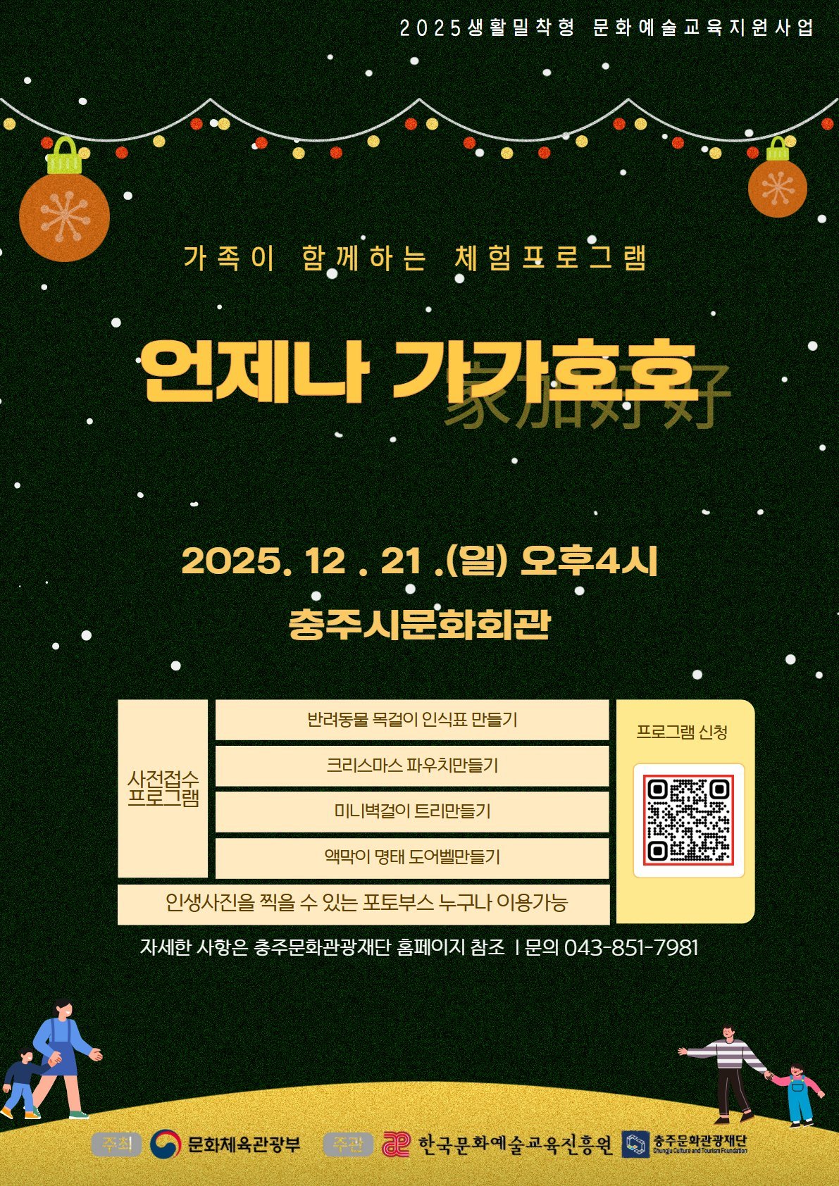 이번 프로그램은 2025 생활밀착형 문화예술교육지원사업의 일환으로 바쁜 일상 속에서 가족과 함께하는 시간이 점점 줄어드는 현대 사회에서, 가족이 함께 웃고 이야기 나누며 한 해를 따뜻하게 마무리할 수 있도록 기획됐다.