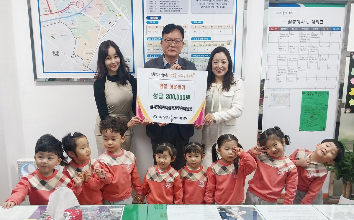 [세종타임즈] 대전 대덕구 송촌동은 17일 꿈사랑어린이집이 바자회와 ‘우리동네 재활용 플랫폼’을 통해 모은 수익금 30만원을 기탁했다고 밝혔다.