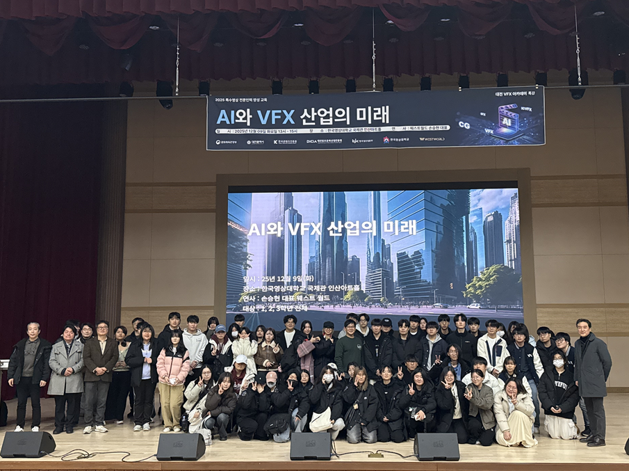 한국영상대학교 VFX콘텐츠전공은 영화와 드라마 제작 현장을 반영한 실무 중심 커리큘럼과 산업체 연계 교육을 통해 AI 기반 차세대 VFX 전문가 양성에 주력하고 있다. 이동호 VFX콘텐츠전공 학과장은 “이번 특강은 재학생은 물론 예비 입학생과 학부모에게 현장에서 바로 활용 가능한 VFX 교육의 방향을 체감할 수 있는 계기가 됐다”며 “앞으로도 특강과 산업 연계를 통해 현업의 노하우를 전하고, 재학생들의 실무 역량을 지속적으로 강화해 나가겠다”고 말했다.