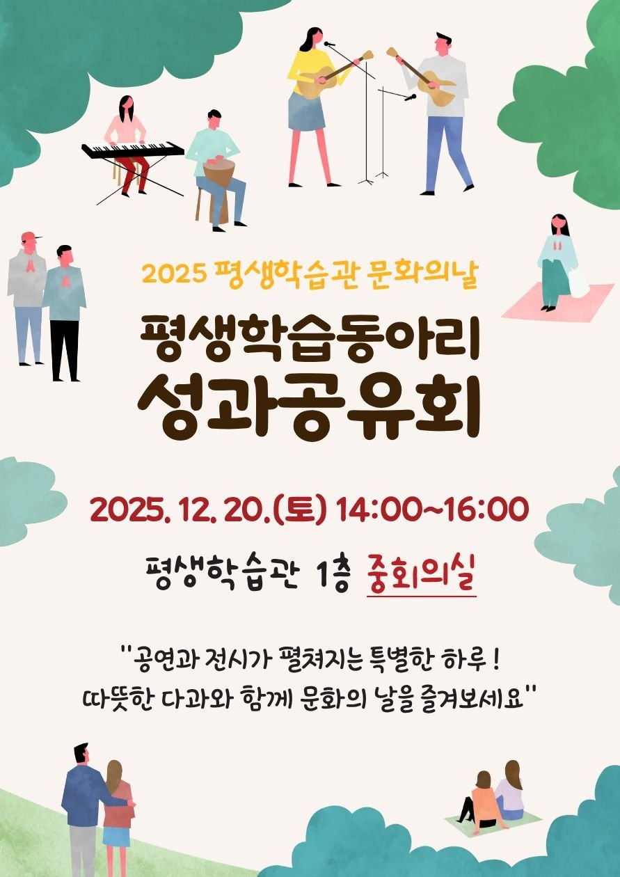 ‘문화의 날’은 학습자들이 서로의 한 해 활동을 공유하고 시민과 함께 소통하는 자리로, 이번 문화의 날은 올해를 마무리하는 의미를 담아 크리스마스 분위기 속 공연과 전시, 다과, 참여형 활동이 어우러지는 따뜻한 행사로 준비됐다.