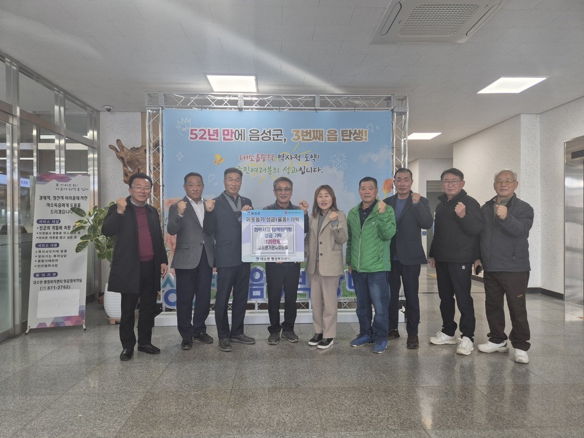 [세종타임즈] 음성군 소이면 6개 기관단체은 지난 18일 대소면 화학 사고 피해 대책위원회에 성금 120만 원을 전달했다.