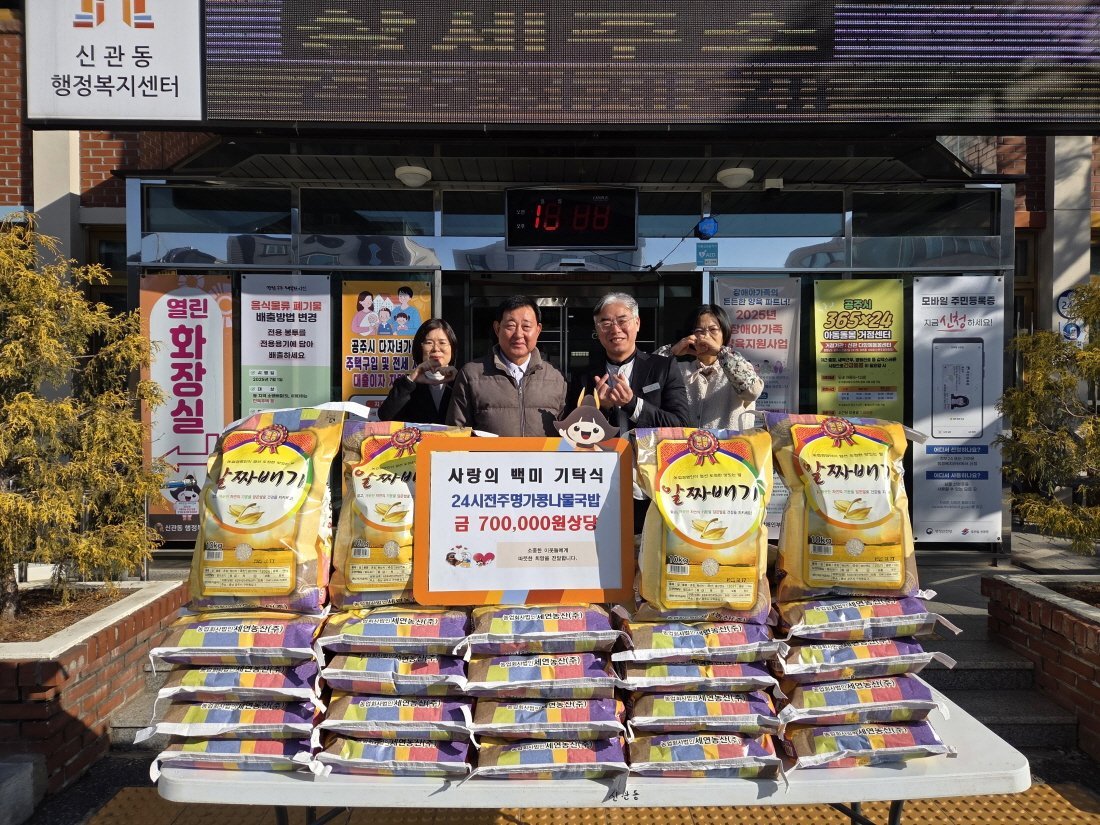 [세종타임즈] 공주시 신관동은 24시전주명가콩나물국밥이 지난 18일 취약계층을 위한 ‘사랑의 백미’를 기탁했다고 밝혔다.