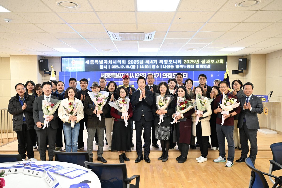 [세종타임즈] 세종특별자치시의회는 19일, 나성동 복합커뮤니티센터에서 ‘2025년 제4기 의정모니터 성과보고회’를 개최하고, 한 해 동안의 의정모니터 활동 성과를 공유했다.