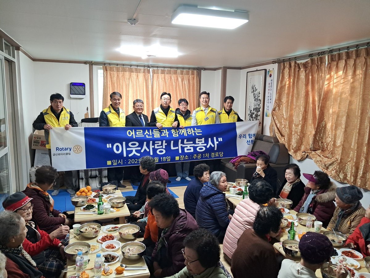 [세종타임즈] 금산로타리클럽은 지난 18일 금산읍 상9리 주공아파트경로당에서 지역 어르신들을 위한 점심 식사 봉사활동을 진행했다.