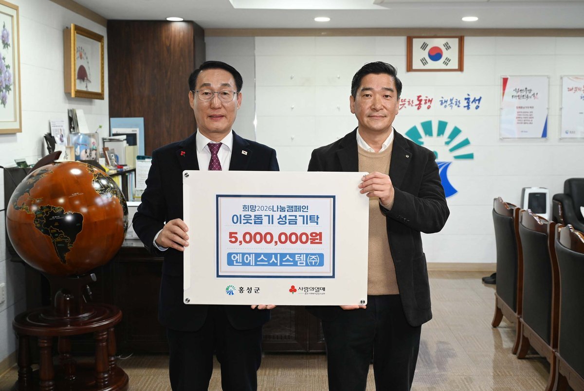 홍성군청 군수실에서 진행된 성금 기탁식은 엔에스시스템 심혁 부사장 등 관계자가 함께 참석했으며, 전달된 성금은 관내 저소득 가구 지원 및 위기가구 긴급 지원 등 다양한 복지사업에 사용될 예정이다.