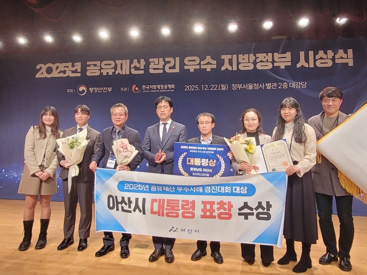 [세종타임즈] 아산시는 행정안전부가 주관한 ‘2025년 공유재산 우수 지방자치단체 시상식’에서 우수사례 경진대회 부문 전국 1위에 해당하는 대통령상을 수상했다고 22일 밝혔다.
