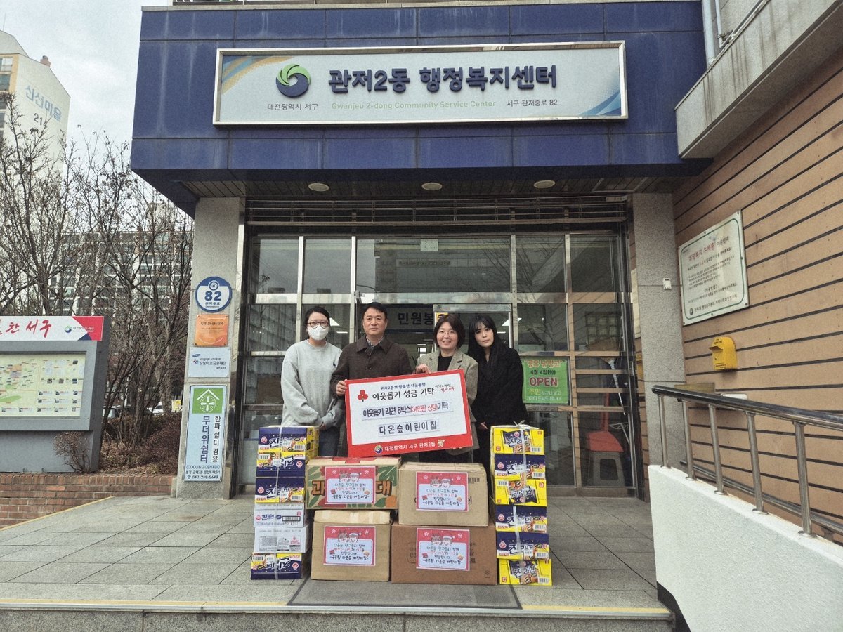 이번에 전달된 물품은 연말을 맞아 어린이집 원아들이 이웃을 돕기 위해 각자 라면을 모아 마련한 것으로, 관저2동에 거주하는 기초생활수급자 등 취약계층 가구에 전달될 예정이다.