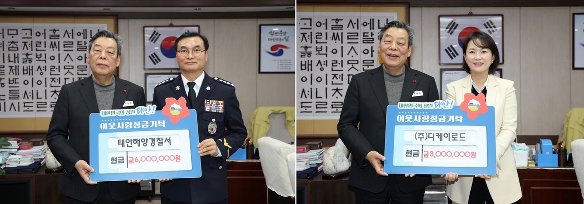 [세종타임즈] 태안해양경찰서와 ㈜디케이로드가 태안군에 성금을 기탁하며 이웃사랑의 마음을 전했다.