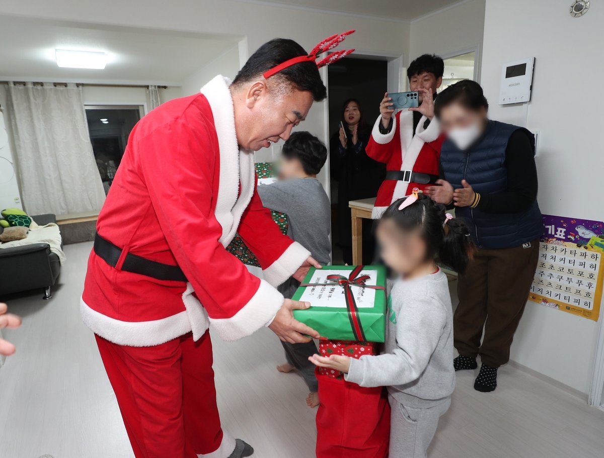 [세종타임즈] 청주시는 지난 23일 이범석 청주시장과 무심천라이온스클럽 회원 30여명이 산타클로스로 변신해 지역 내 저소득 가정 아동 100명에게 크리스마스 선물을 전달했다.