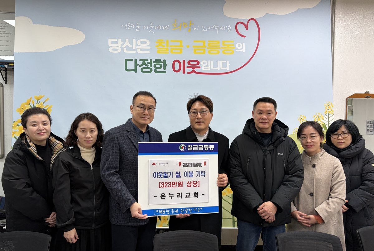 온누리교회는 칠금금릉동 행정복지센터를 방문해 쌀과 이불 등 이웃돕기 물품 323만 원 상당을 기탁했다고 31일 밝혔다.