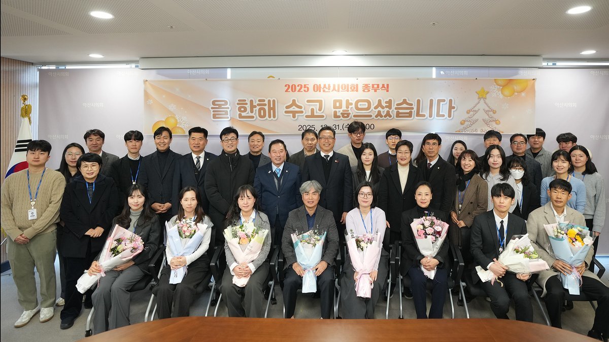 [세종타임즈] 아산시의회는 12월 31일 오전 11시 의회동 3층 다목적회의실에서 시의원과 의회사무국 직원들이 참석한 가운데 2025년도 종무식을 개최하고 한 해 의정활동을 마무리했다.
