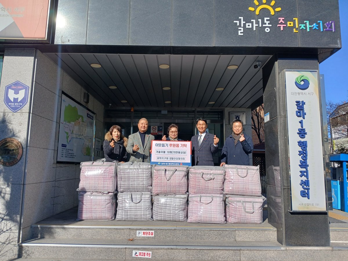 [세종타임즈] 대전 서구 갈마1동 행정복지센터는 갈마지구대 생활안전협의회로부터 70만 원 상당의 겨울 이불 10채를 기탁받았다고 2일 전했다.