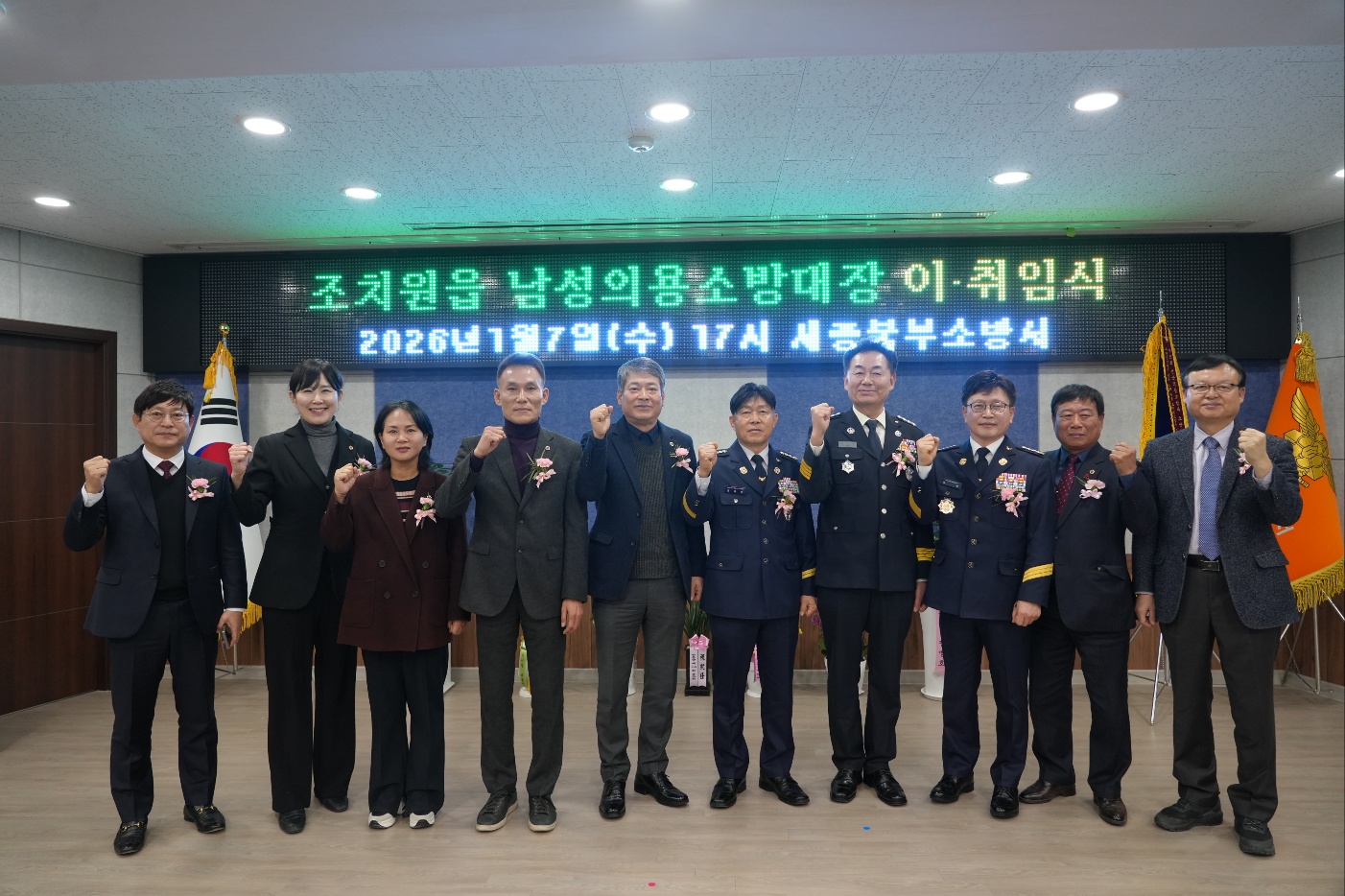[세종타임즈] 세종북부소방서가 지난 7일 북부소방서 대회의실에서 조치원읍 남성의용소방대장 이·취임식을 개최했다.