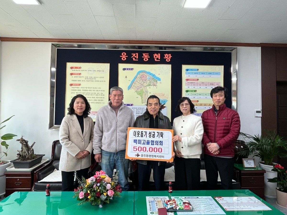 노성자 웅진동장은 “매년 잊지 않고 이웃사랑을 실천해 주시는 백미고을협의회 회원 여러분께 깊이 감사드린다”며 “기탁된 성금은 도움이 필요한 취약계층을 위해 소중히 사용하겠다”고 밝혔다.
