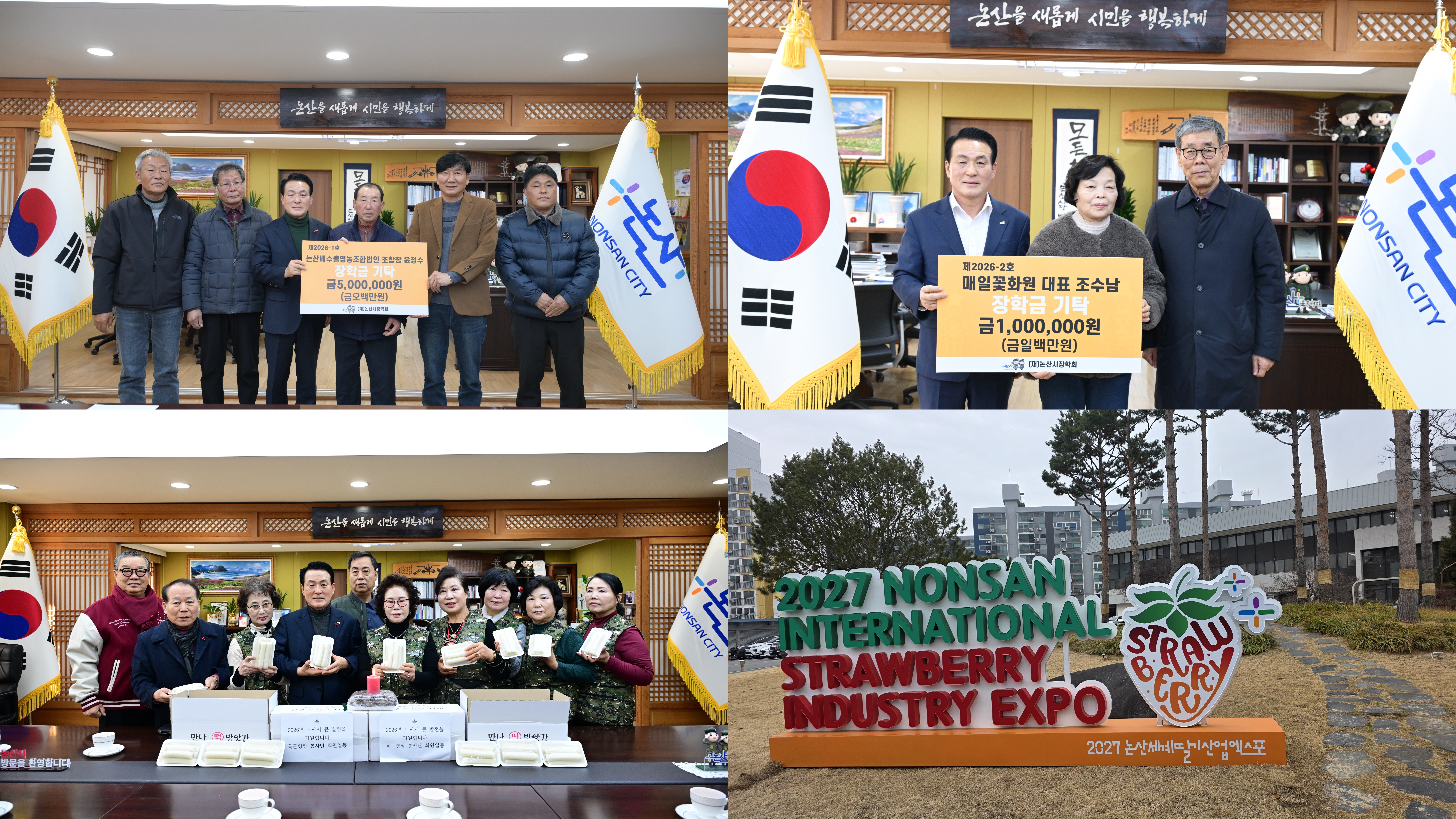 논산시는 논산배수출영농조합법인과 매일꽃화원, 육군병장봉사단이 (재)논산시장학회에 장학금을 기탁했다고 밝혔다.
