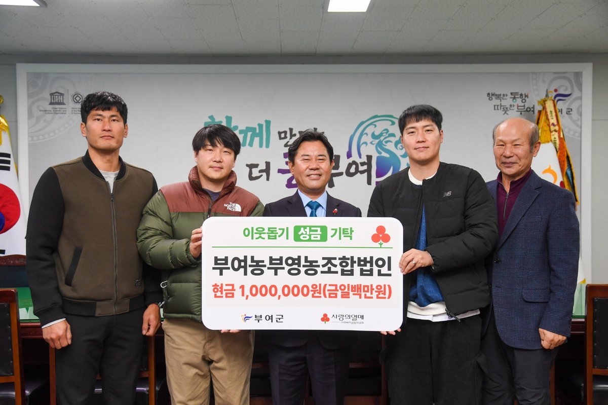 이에 군수는 “지속적인 나눔을 통해 지역사회에 모범을 보여주고 있는 부여 농부영농조합법인에 깊이 감사드린다.”라며, “기탁해 주신 성금은 꼭 필요한 이웃들에게 소중히 전달하겠다.”라고 전했다.