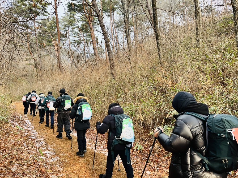 참여 청소년 각자가 올 한 해의 소망과 다짐을 적은 현수막을 배낭에 달고 산행을 진행해 의미를 더했다.