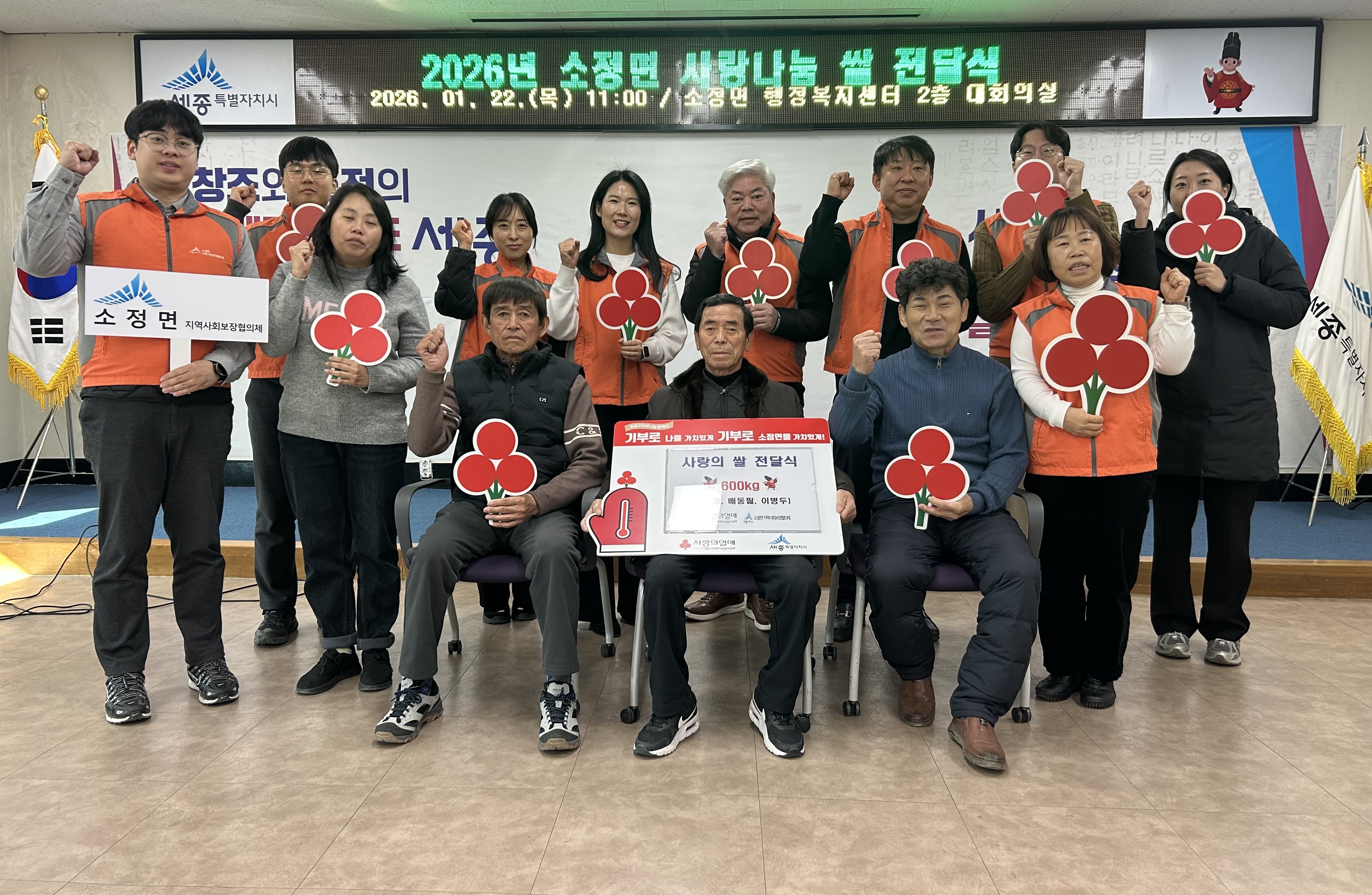[세종타임즈] 세종시 소정면 지역사회보장협의체가 22일 행정복지센터에서 저소득층을 위한 쌀 전달식을 진행했다.
