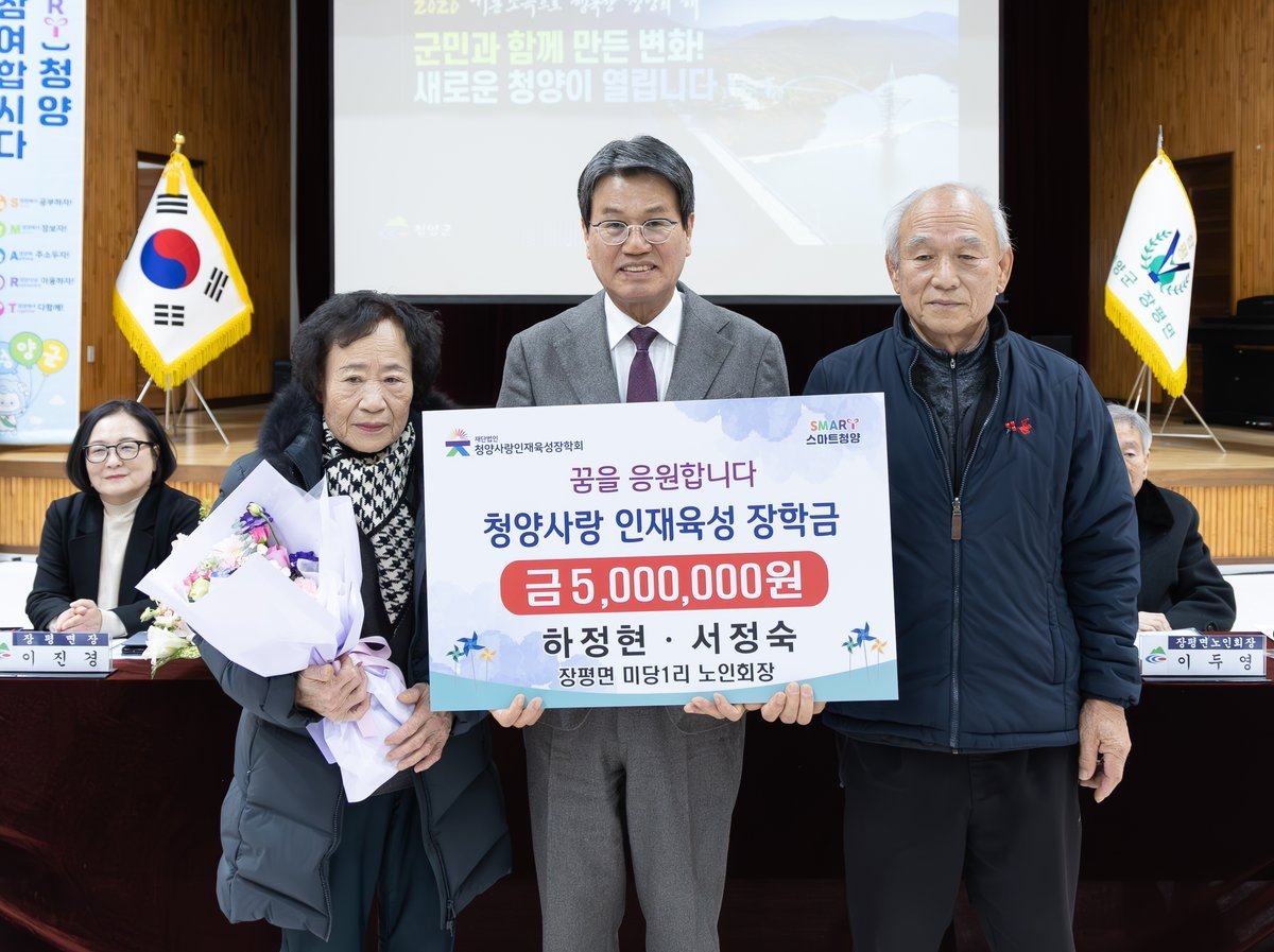 이번 장학금은 지역의 미래를 이끌어 갈 청양의 인재들이 경제적 부담 없이 학업에 전념하며 꿈을 키워갈 수 있도록 돕기 위해 마련된 것으로 지역사회에 따뜻한 감동을 전하고 있다.