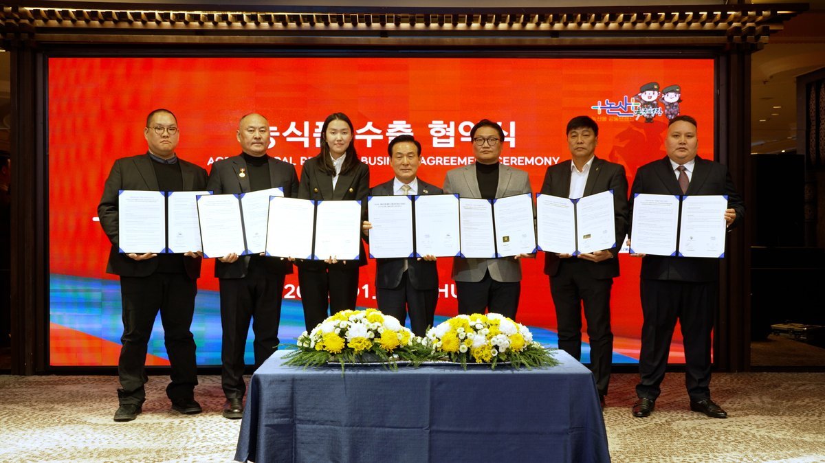 논산시는 22일 몽골 울란바토르 징기스칸 호텔에서 몽골 현지 대형 유통 전문기업 6개사와 ‘논산시 농식품 수출 활성화를 위한 수출 협약’을 체결했다.