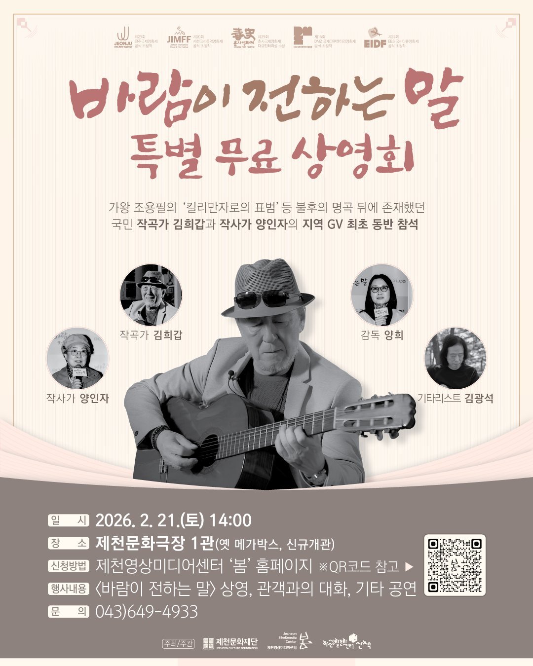 [세종타임즈] 제천문화재단이 오는 2월 21일 오후 2시, 제천문화극장 에서 양희 감독과 출연진이 함께 하는 ‘바람이 전하는 말’특별 무료 상영회를 개최한다.