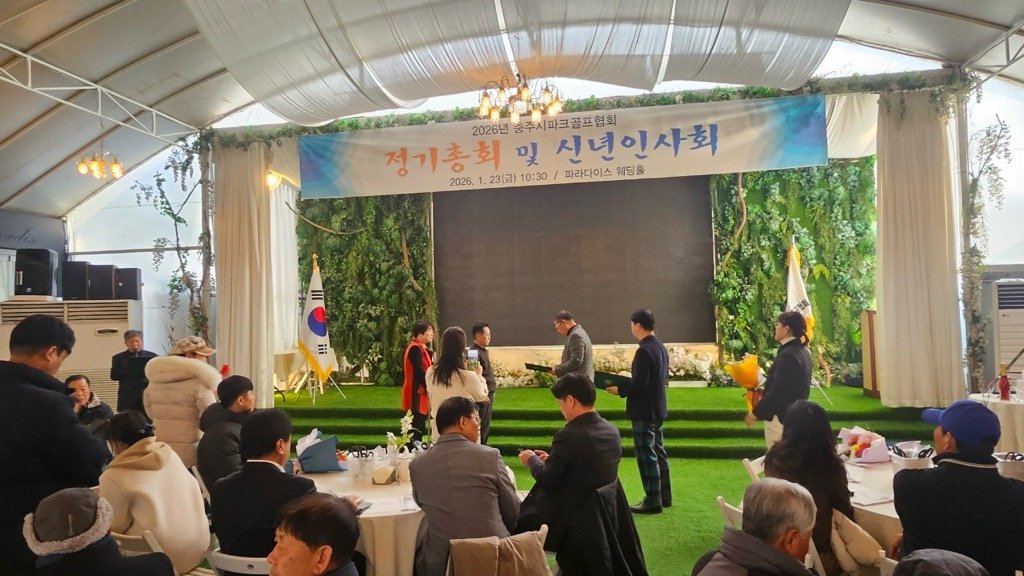 [세종타임즈] 충주시파크골프협회는 23일 충주 파라다이스 웨딩홀에서 협회 소속 37개 클럽 회장 및 임원, 협회 임원 등 160여명이 참석한 가운데 2026년 정기총회 및 신년인사회를 개최했다.